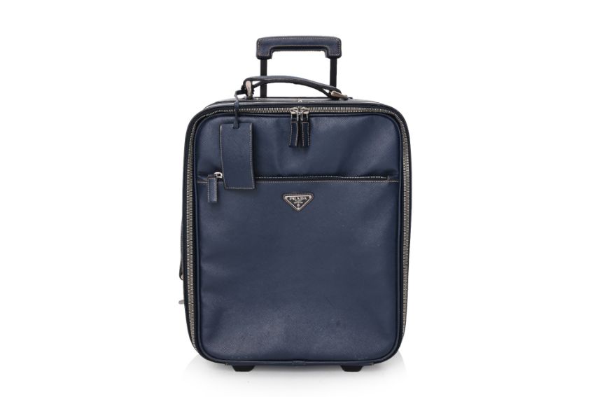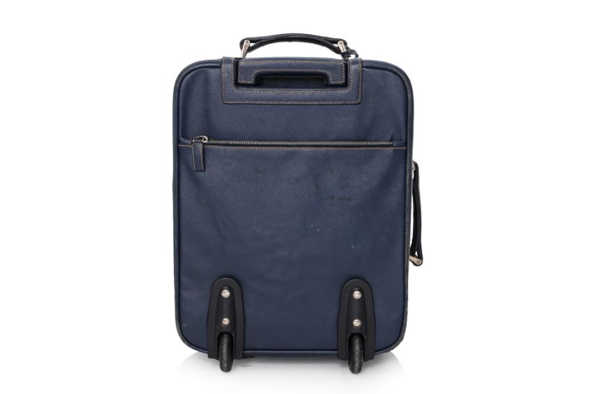 Condition Information: Shows significant signs of wear from use, such as notable abrasions to the leather at the reverse and leather scuff marks on the exterior. Wheels show signs of heavy use.