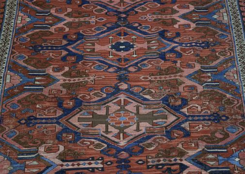 Condition Information: Good overall condition with some colour loss, areas of wear to each side side of the rug