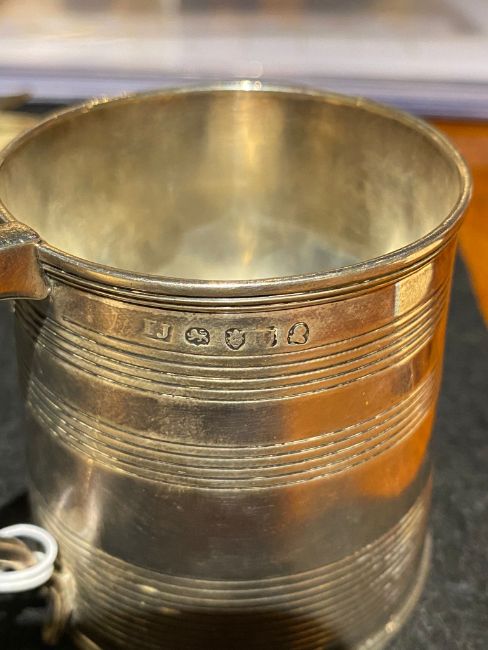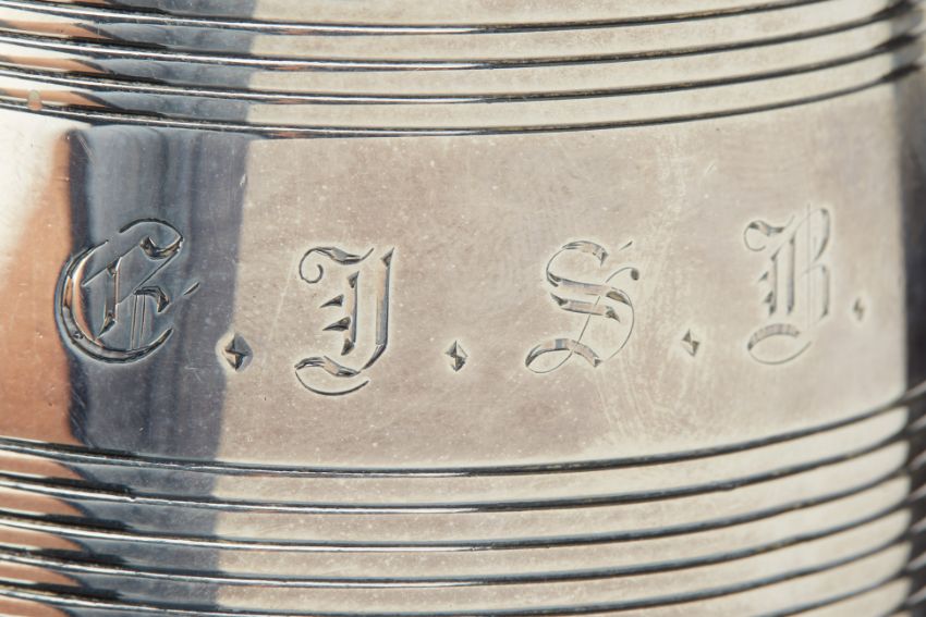With reeded band decoration, engraved with initials to the front