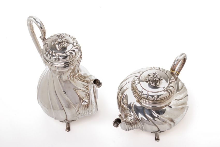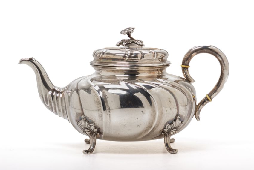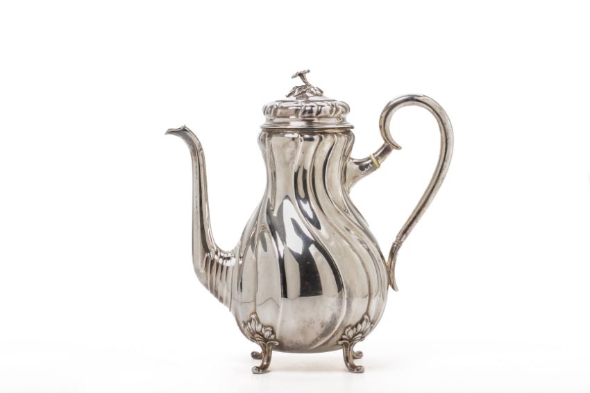 Of wrythen form with foliate finial and on foliate rococo feet