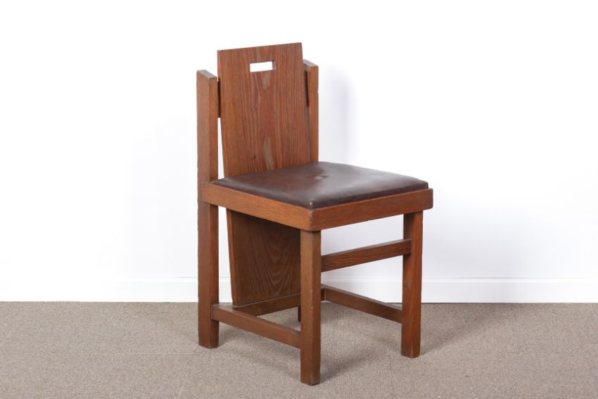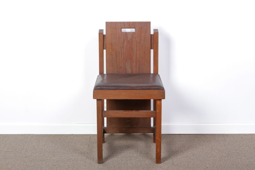A low back oak side chair designed by Frank Lloyd Wright for the Francis W. Little House, Peoria, Illinois, 1902/3
