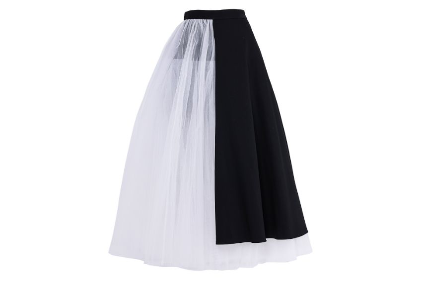A JUNYA WATANABE BLACK AND WHITE TULLE AND TUXEDO MIX SKIRT