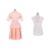 Comprising a pink ruffle blouse and skirt set with pleat detailing, tie fastening at neck, zip closure at left hip, and an off white sleeveless dress with honeycomb and paisley cutout detailing and zip closure at hip.