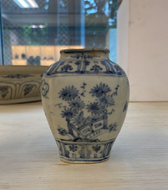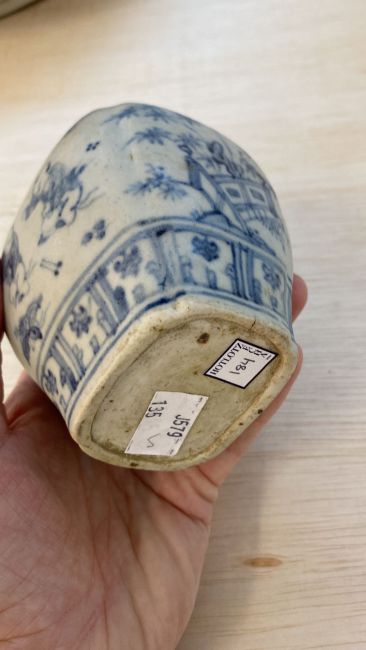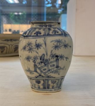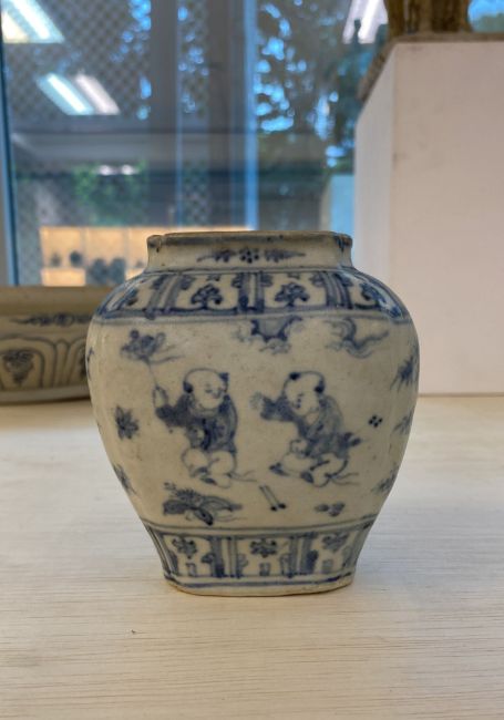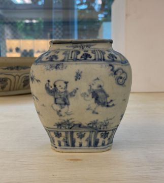 A BLUE AND WHITE PORCELAIN BOYS JAR