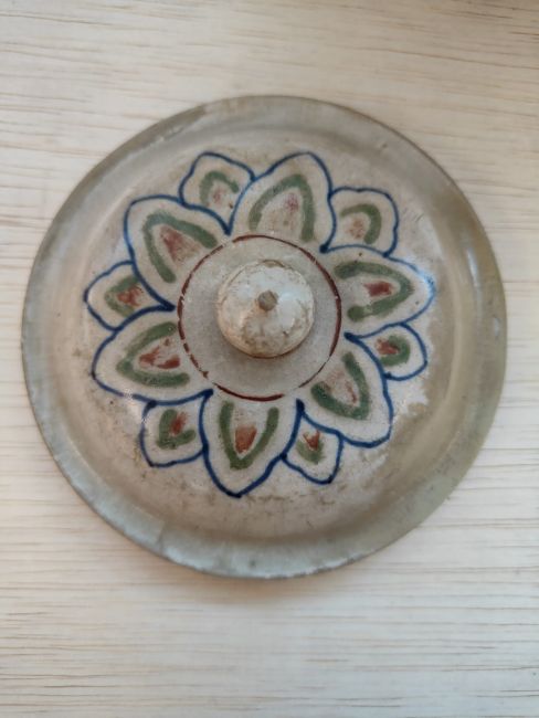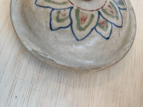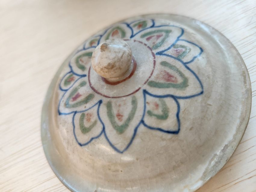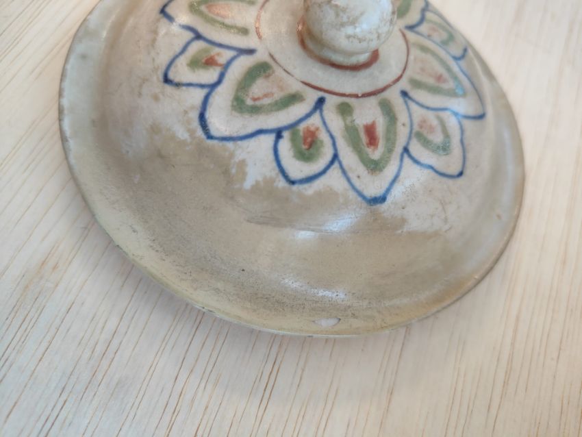 The edge of the cover has been restored on two sides. There is a small chip to the tip of the finial.