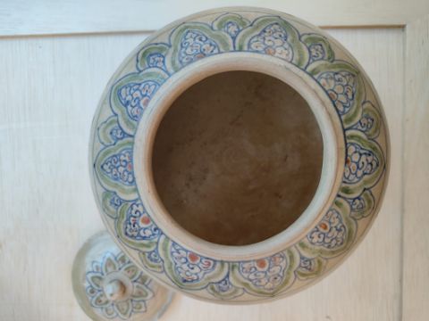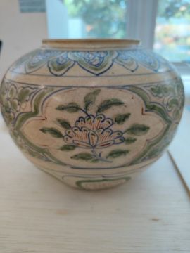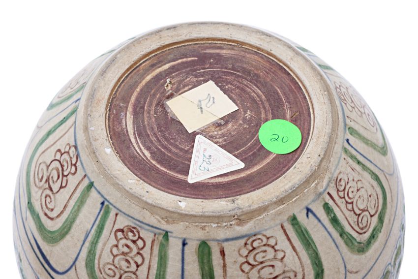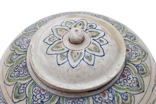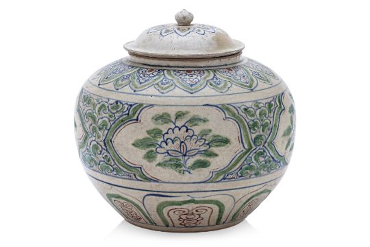 A LARGE VIETNAMESE POLYCHROME JAR AND COVER