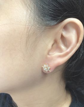 Featuring round cut diamonds totalling approximately 0.40 Cts, mounted in a rose gold setting marked '750' for 18K.