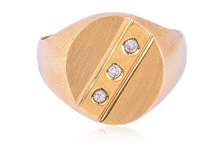 Featuring round cut diamonds totalling approximately 0.06 Cts, mounted in a yellow gold setting marked '750' '18K'.