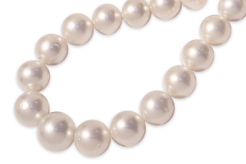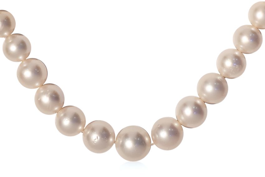 A GRADUATED SOUTH SEA CULTURED PEARL SINGLE STRAND NECKLACE