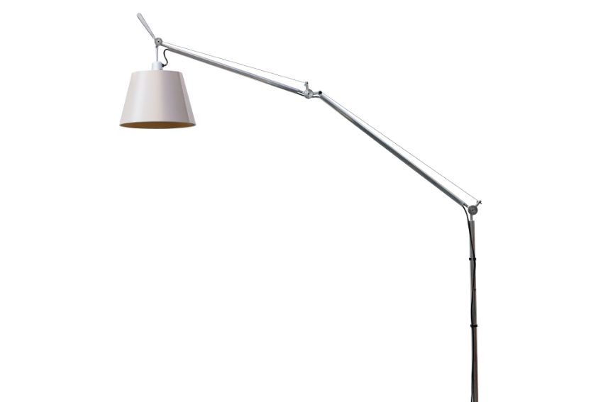 Fully adjustable articulated arm body in aluminum, parchment diffuser, weighted steel base; tested and working