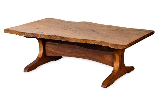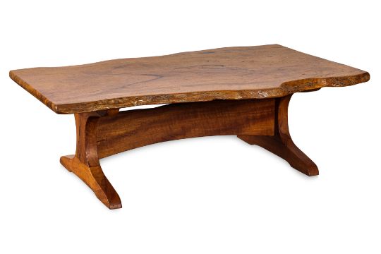 Australian, Mid/Late 20th Century, low rectangular table with uncut sides, on stretcher base, peg joint construction
