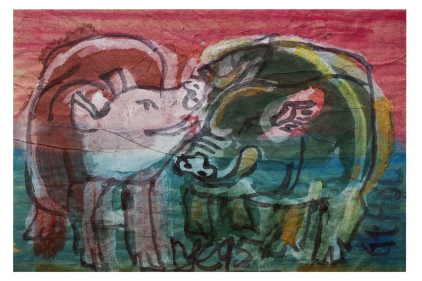 Gouache on paper, signed and dated '95' lower right
