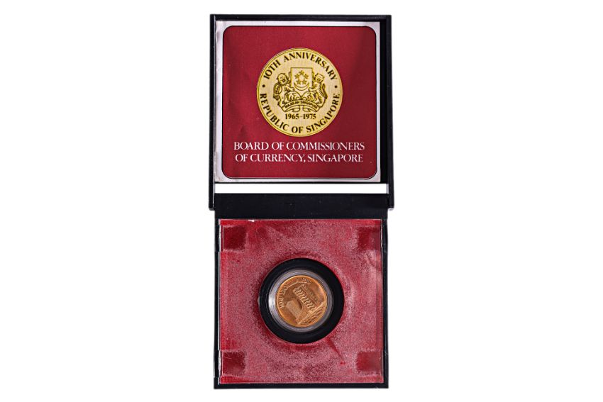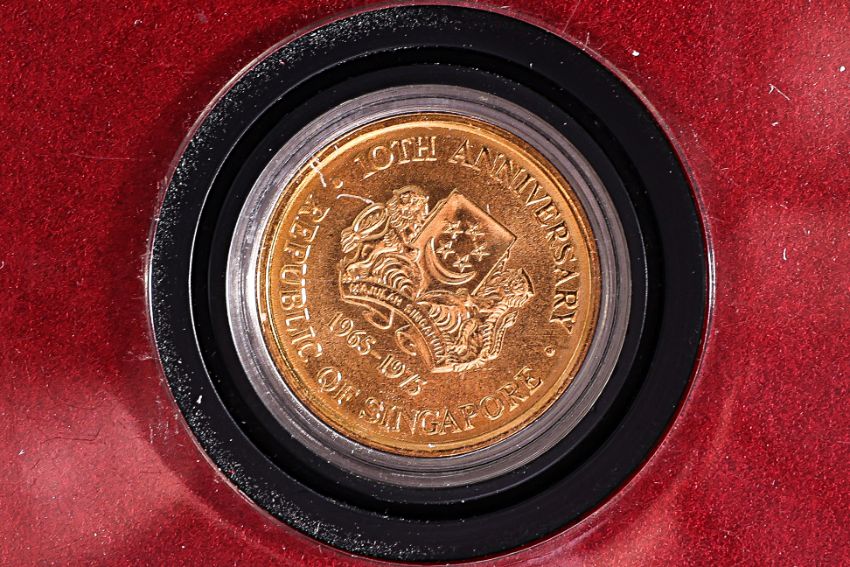Produced to commemorate the 10th Anniversary of the Republic of Singapore, struck in .900 gold, in fitted box