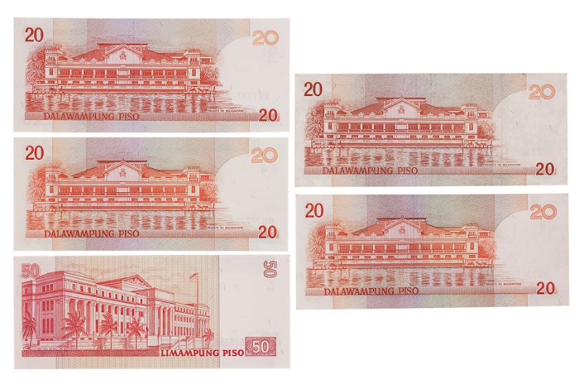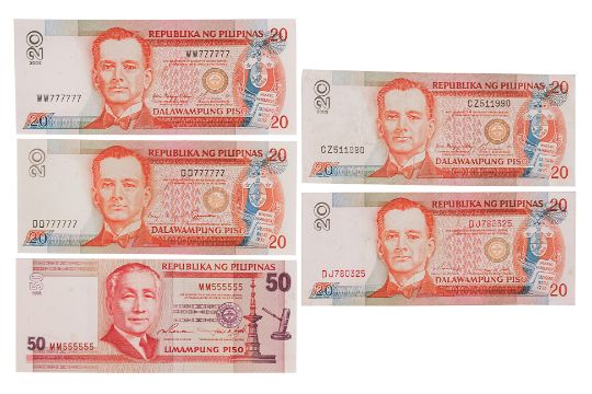 20 Peso, (2) Serial No DJ780325; CZ511990;