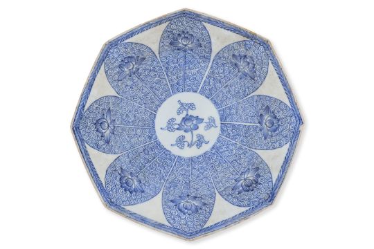 Late Kangxi/Yongzheng period, decorated in eight radiating petals, each with interior lotus floret, central reserve lotus.