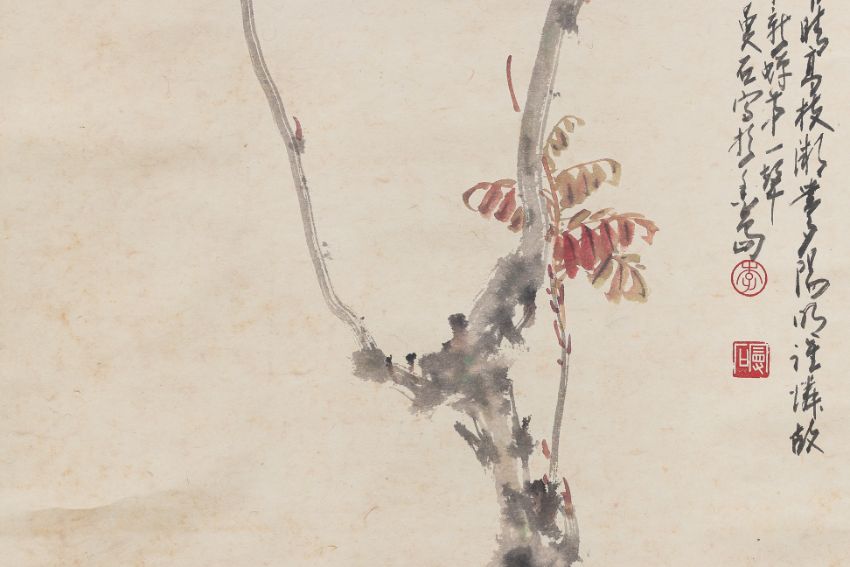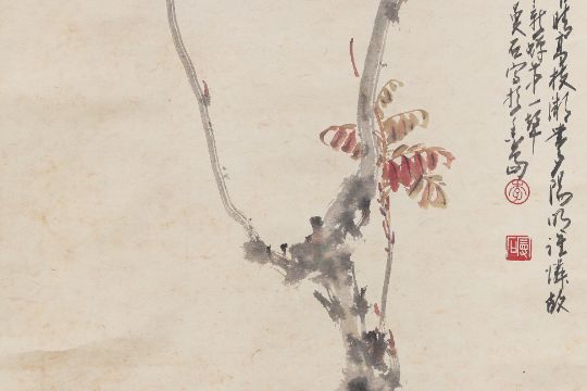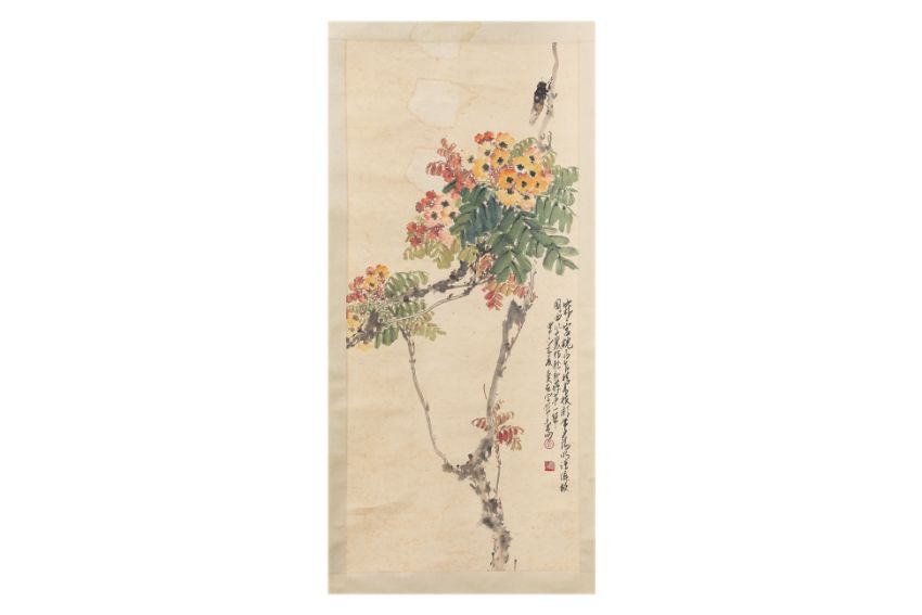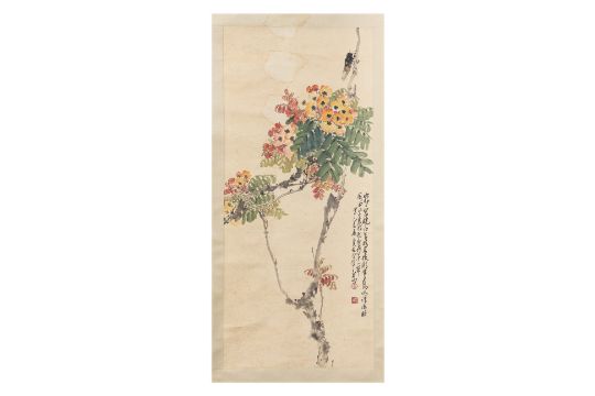 Ink and colour on paper, inscribed and with two seals lower right, scroll backing