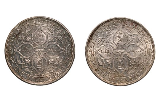 Crowned bust facing right, reverse with Arabesque design with denomination in Chinese and Malay, approx XF-AU