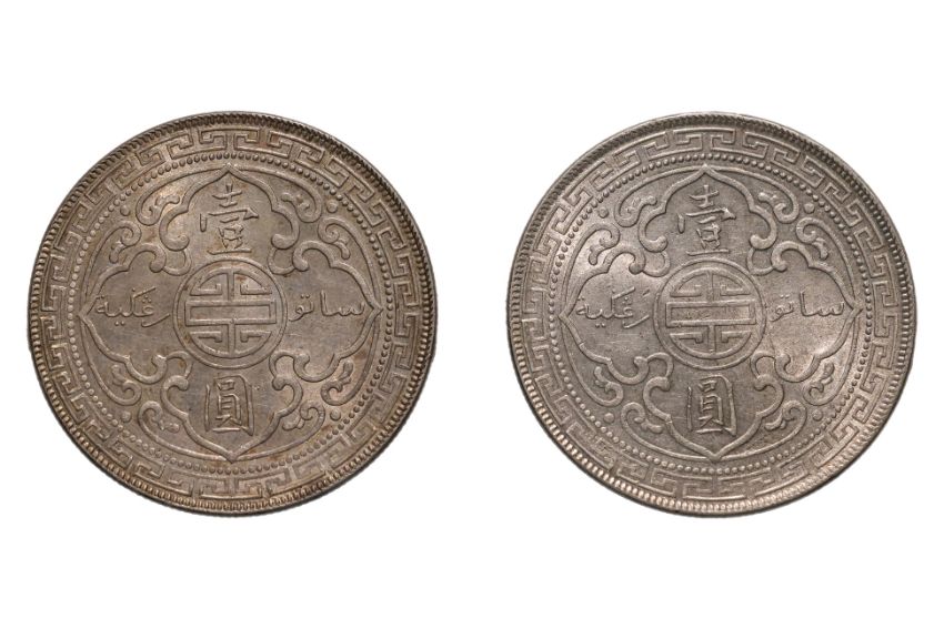 Britannia standing holding a trident and a shield, date below, reverse with Chinese characters and Jawi script, B mintmark to trident, both approx AU