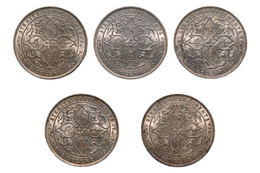 Crowned bust facing right, reverse with Arabesque design with denomination in Chinese and Malay, approx XF-AU or better