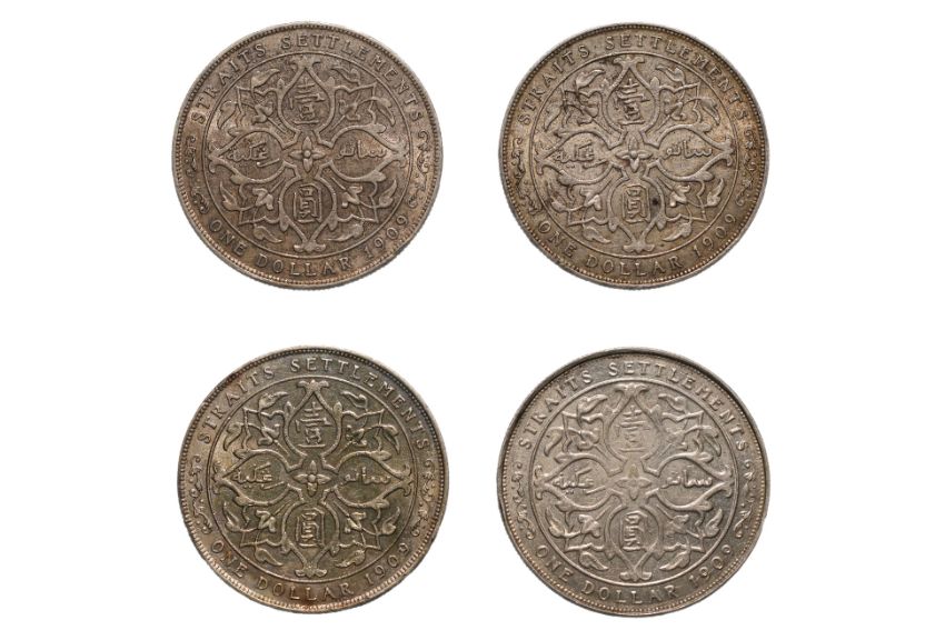 Crowned bust facing right, reverse with Arabesque design with denomination in Chinese and Malay, approx VF-XF
