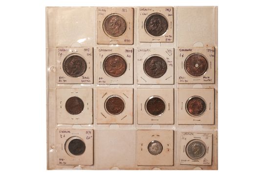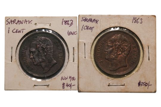 A large collection of Sarawak coinage, approximately 120 coins, covering most dates and denominations, various circulated conditions with occasional better examples including two 1863 James Brooke Rajah 1 Cent coins
