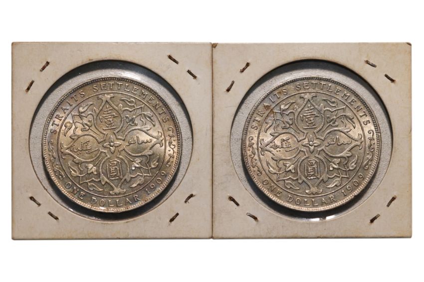 Crowned bust facing right, reverse with Arabesque design with denomination in Chinese and Malay, approx AU, some toning