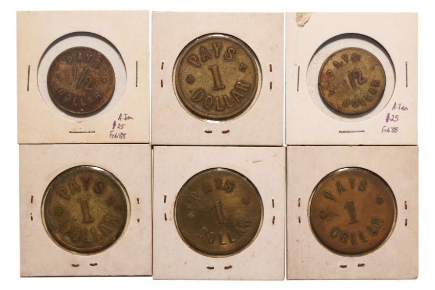Comprising: 1 Dollar (4), with two variations of reverse ; and 1/2 Dollar (2)