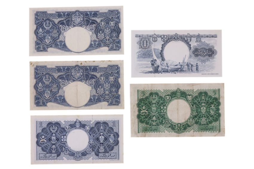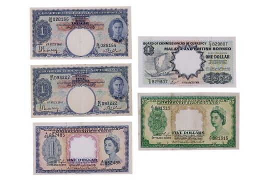 Elizabeth II 1 Dollar, 21st March 1953 A/66852485; 5 Dollar 21st March 1953 A/1 081315;