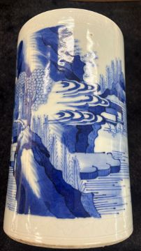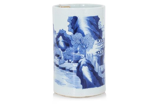 A BLUE AND WHITE PORCELAIN BRUSHPOT