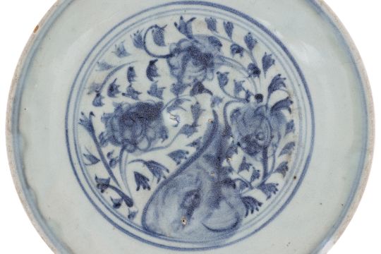 Condition Information: There are chips to the foot rim and rim, some repaired at the rim, and hairlines to the rim.