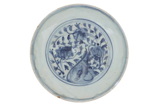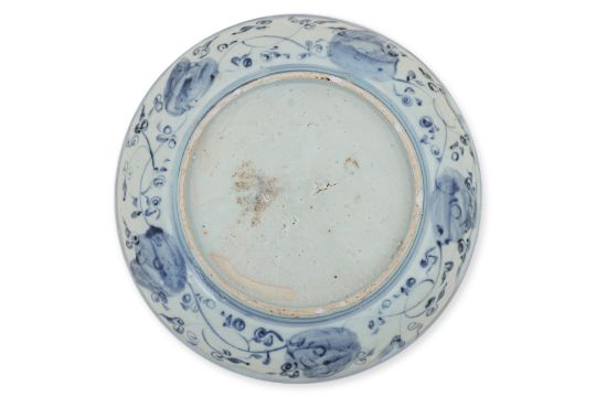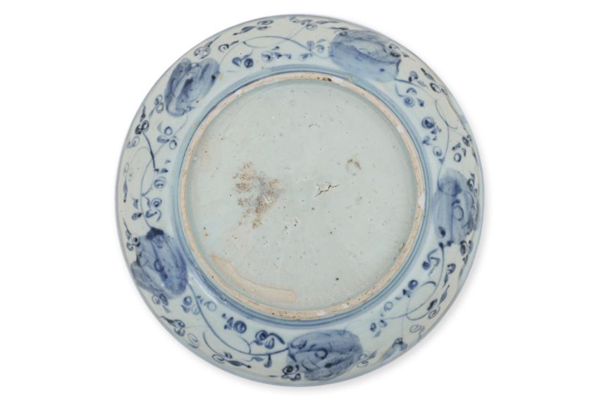 Late Ming period, decorated in scrolling flowers and vines, similar decoration to the exterior walls, glazed unmarked base