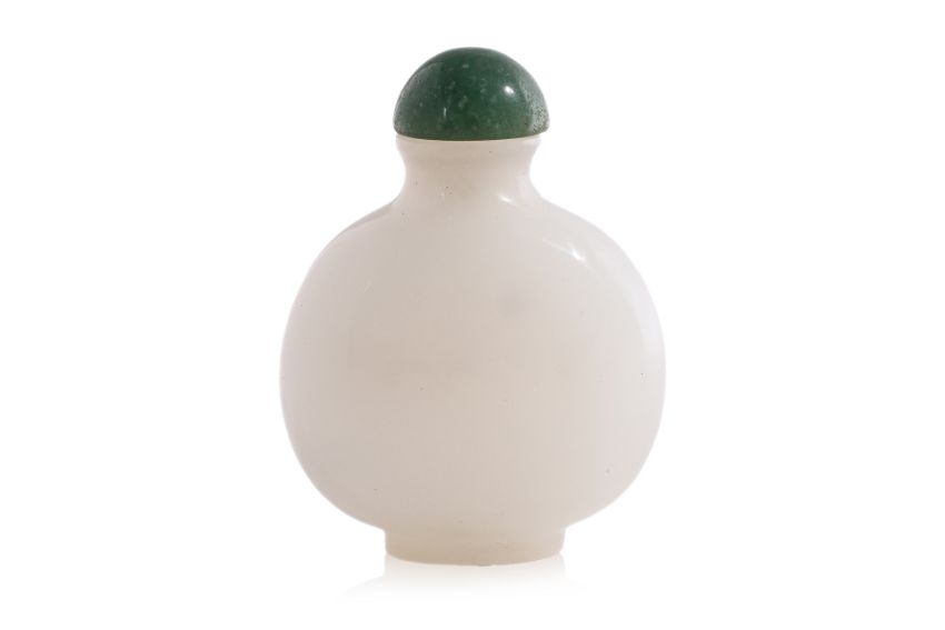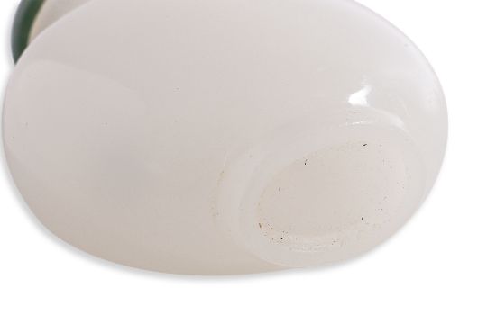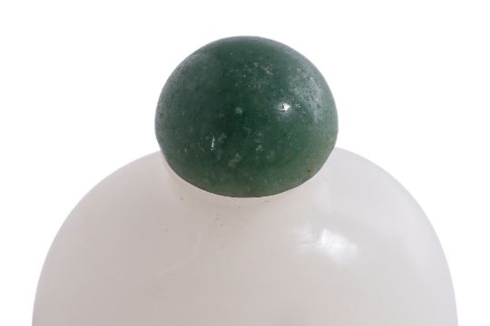 Of compressed circular form with waisted neck, imitating white jade, domed green jade stopper, probably 19th century