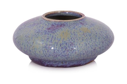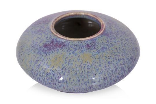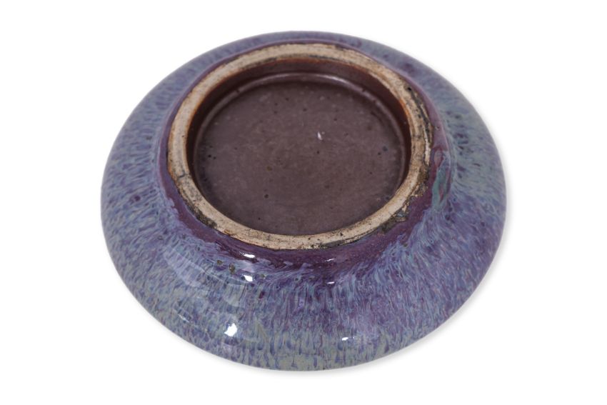 Qing, 19th Century, of squat circular form, covered in a thick purple and blue streaked glaze, the recessed foot with brown glaze