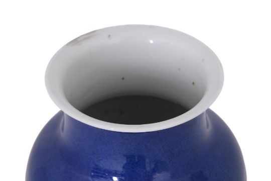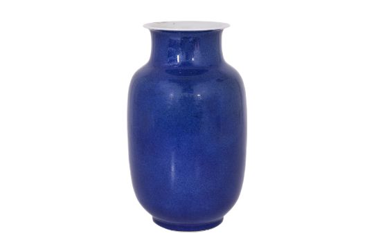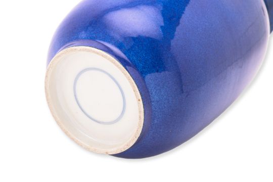 Lantern form vase with short wide neck and everted mouth rim, blue underglaze double ring to base, probably late Qing