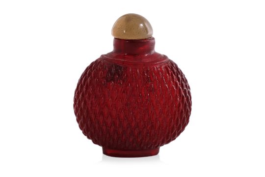 18th/19th Century, decorated with a continuous basket weave design, the shoulder with a raised rim, recessed base