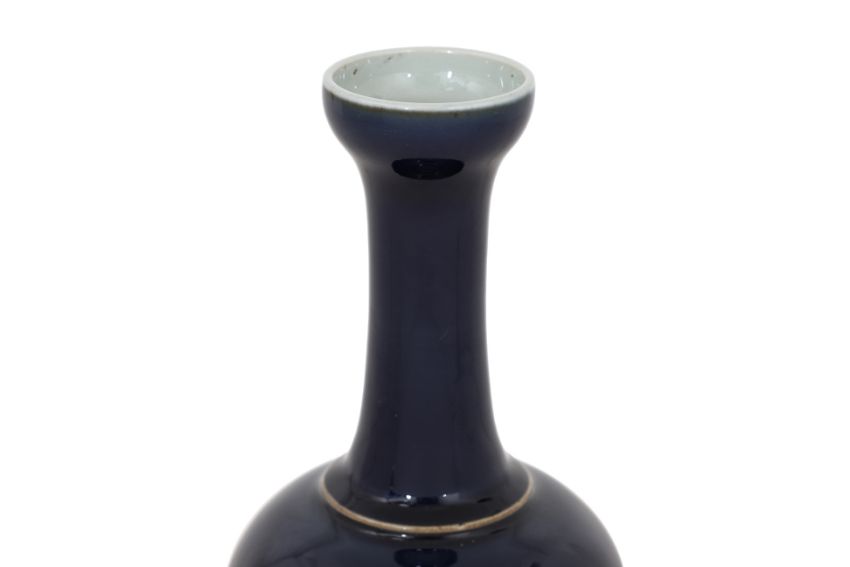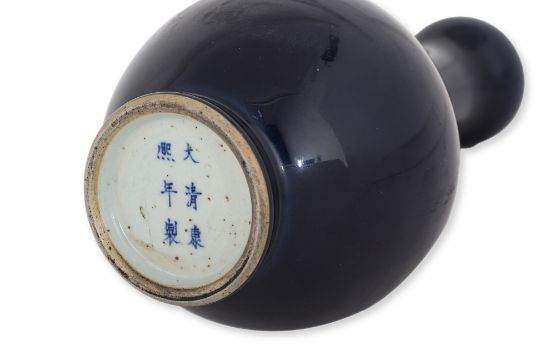 Vase with globular body tapering to a slender neck and everted mouth rim, apocryphal six character Kangxi mark to base