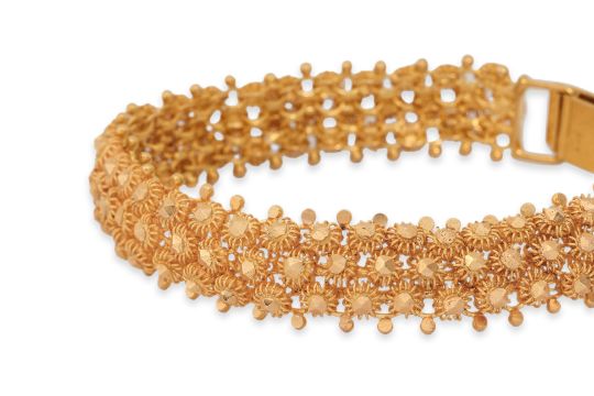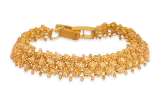 Featuring a high karat gold bracelet marked '916' for 22K.