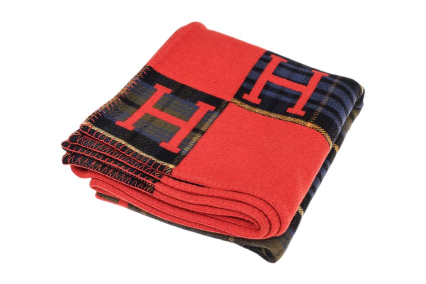 Reversible design, featuring a plaid jacquard pattern with signature "H" motifs throughout