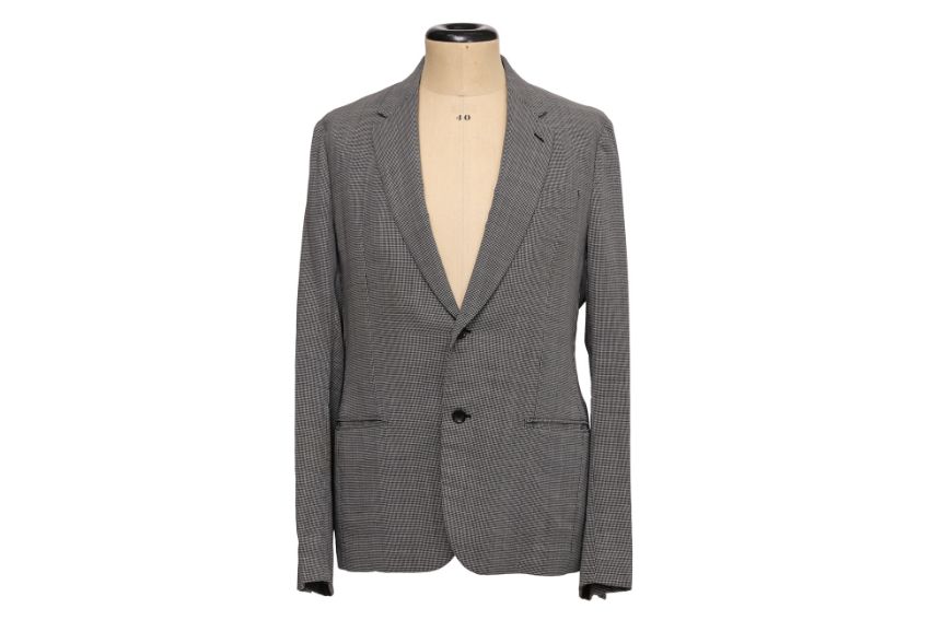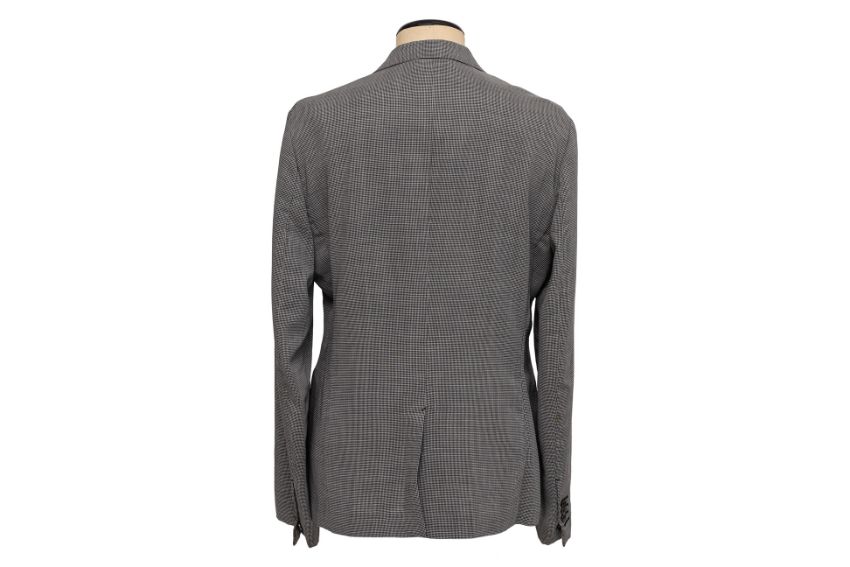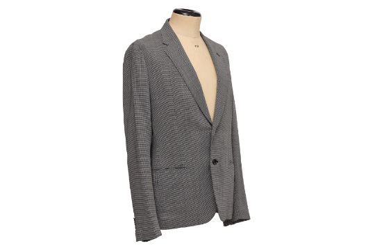 With notch lapels, a two-button front, and flap pockets and single vent at the back