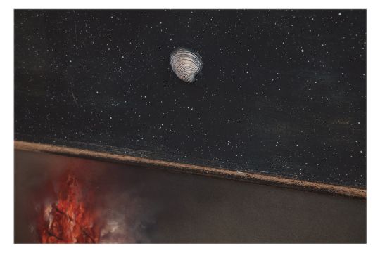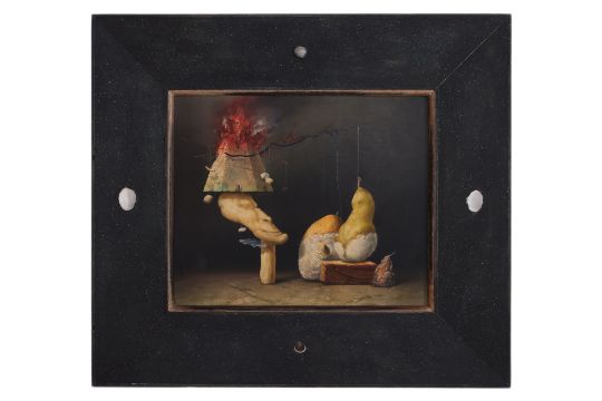 Mixed media on board, signe dand with thumbprint lower left, artist's frame, titled to gallery label verso