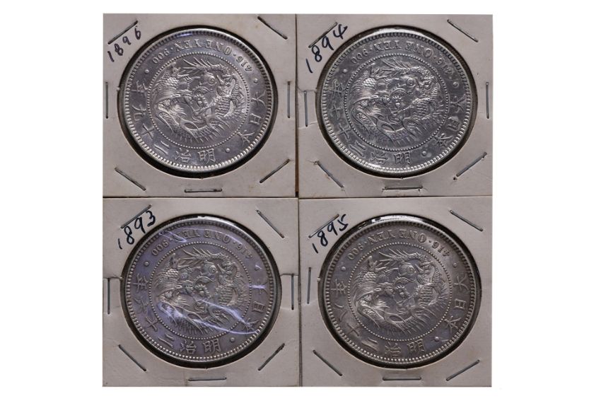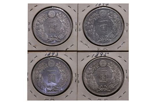 JAPAN - 1 YEN MEIJI YEAR 26 (1893); YEAR 27 (1894); YEAR 28 (1895); YEAR 29 (1896)