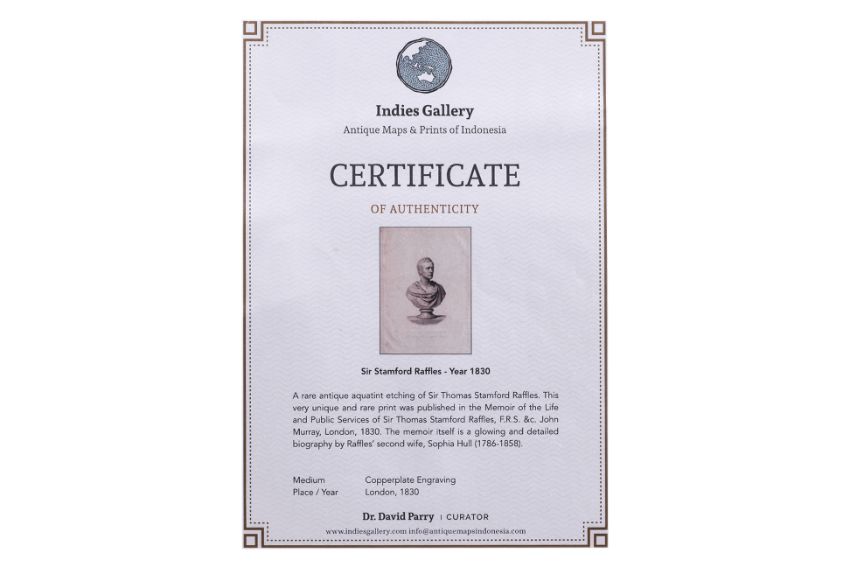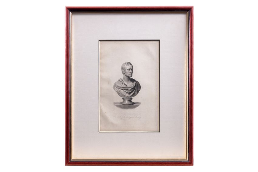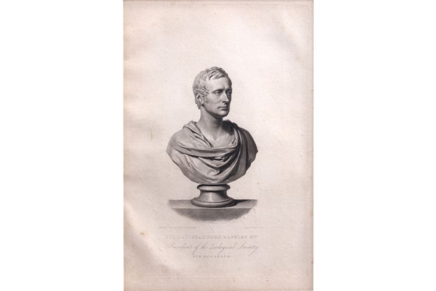 'President of the Zoological Society', copper plate engraving, from Memoir of the Life and Public Services of Sir Thomas Stamford Raffles, F.R.S. &c. John Murray, London, 1830, engraved by S. Cousins, after a bust by Sir Francis Leggatt Chantrey (1781-1841)