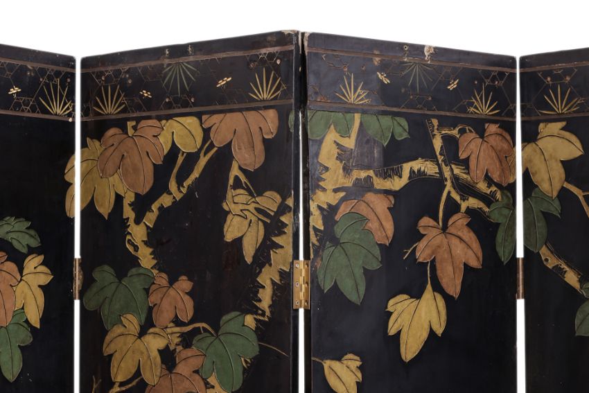 Condition Information: There are multiple chips and areas of loss in lacquer, particularly at the corners and edges of both end panels
