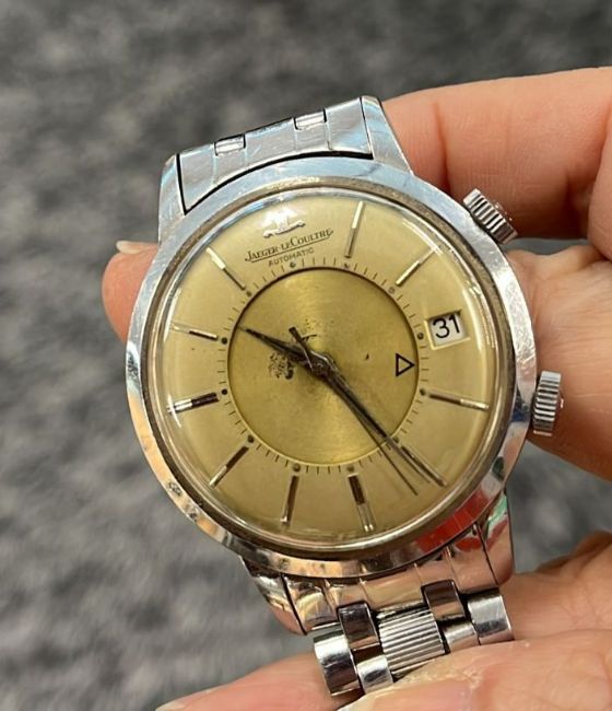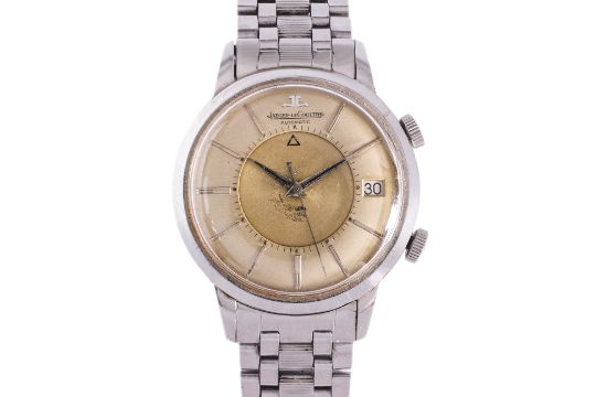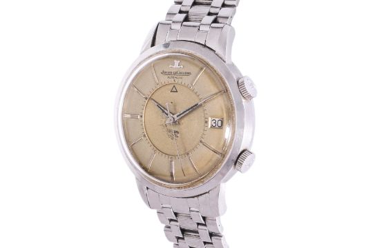 A JAEGER LE COULTRE MEMOVEX AUTOMATIC ALARM STAINLESS STEEL BRACELET WATCH