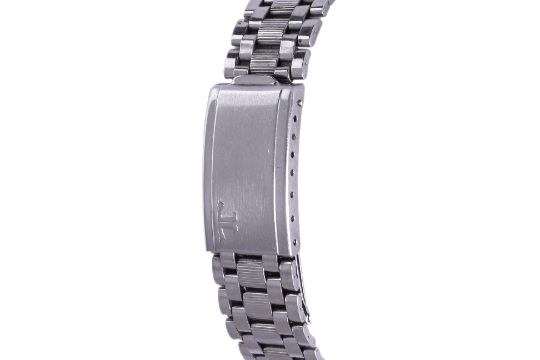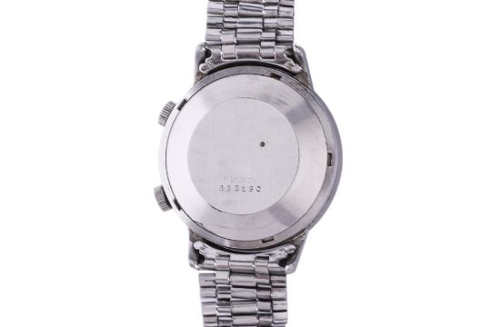 Stainless steel case with twin crowns, the toned dial with baton hour markers, date aperture at 3 o'clock, and alarm pointer arrow to centre, automatic movement, stainless steel bracelet