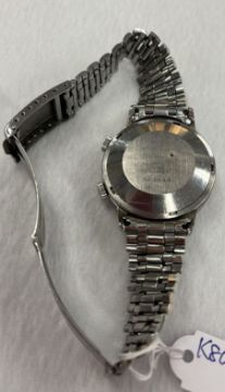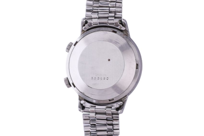 Condition Information: Movement is running and alarm function working, time keeping accuracy not tested, yellowing/toning to the dial and some marks to the centre of the dial, some corrosion to the hands, some scratching and wear commensurate with age throughout.