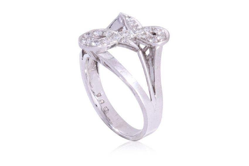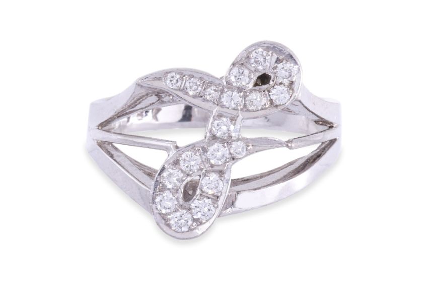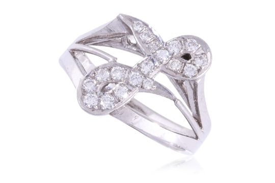 Featuring round brilliant cut diamonds totalling approximately 0.24 Cts, mounted in a white gold setting marked '18K'.