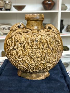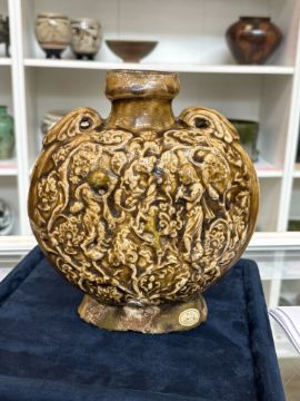 A BROWN-GLAZED STONEWARE PILGRIM'S FLASK, BIAN HU