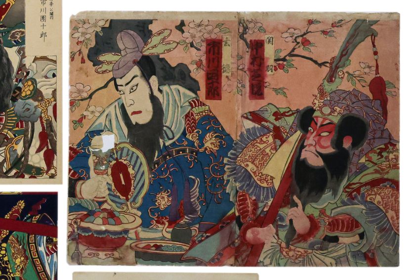 Artist Unknown - Two Kabuki prints (two pages joined)(poor condition)