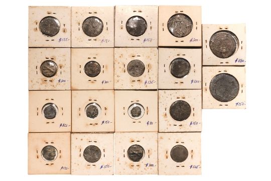 Circa 16th Century, eighteen assorted denominations, all with extensive annotations to holders, various conditions, the majority in somewhat poor condition